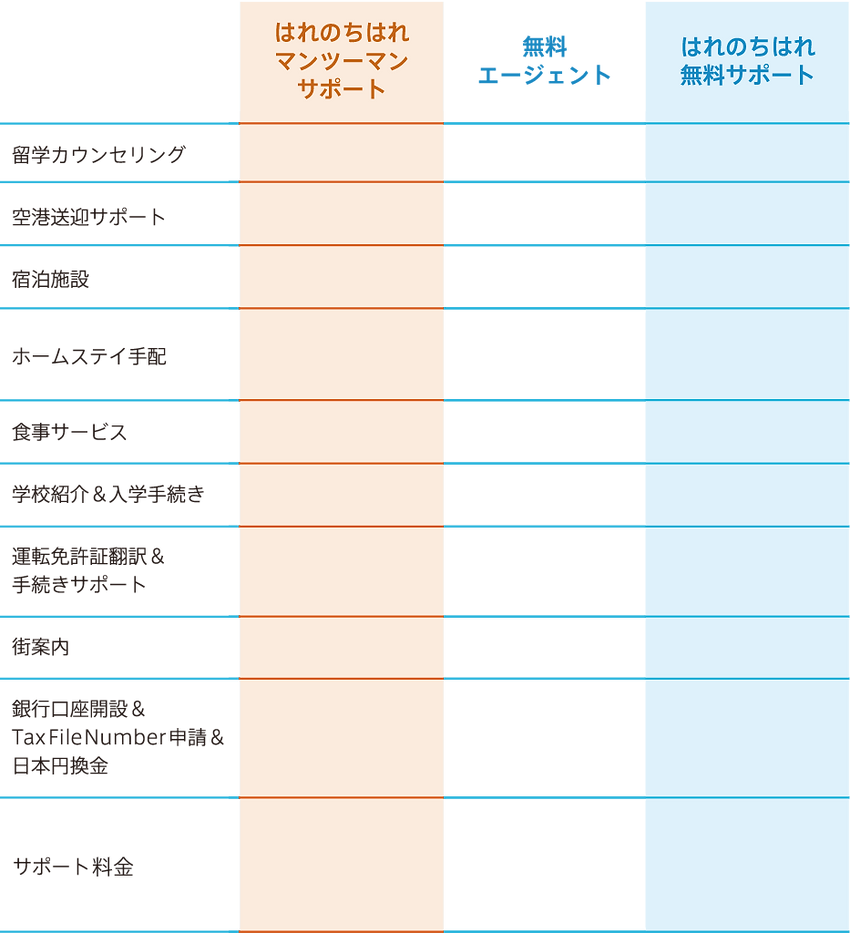 現地無料サポートを謳っているエージェントがありますが、ホームステイ手配、空港お迎え、翻訳サービスなどは全て手数料が掛かっています。